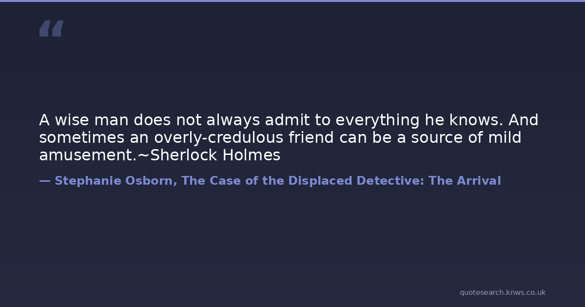 A wise man does not always admit to everything he knows. And sometimes an overly-credulous friend can be a source of mild amusement.~Sherlock Holmes