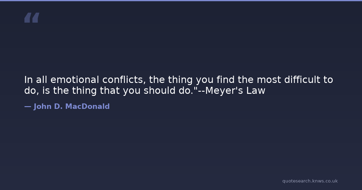 In all emotional conflicts, the thing you find the most difficult to do, is the thing that you should do."--Meyer's Law