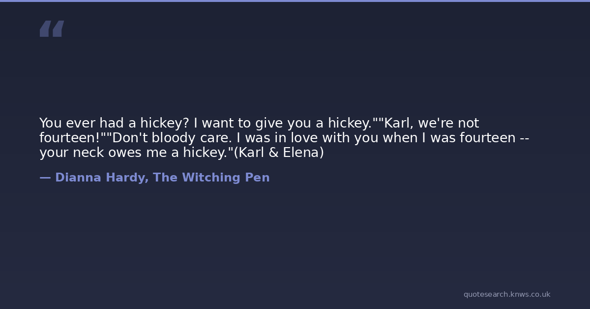 You ever had a hickey? I want to give you a hickey.""Karl, we're not fourteen!""Don't bloody care. I was in love with you when I was fourteen -- your neck owes me a hickey."(Karl & Elena)