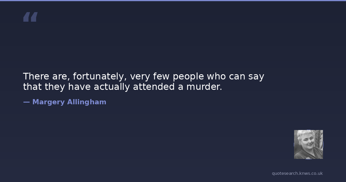 Margery Allingham was a 20th-century English editor and novelist. Margery Louise Allingham was an English novelist from the "Golden Age of Detective Fiction", and considered one of its four "Queens of Crime", alongside Agatha Christie, Dorothy L. Sayers and Ngaio Marsh. Read more on Wikipedia →