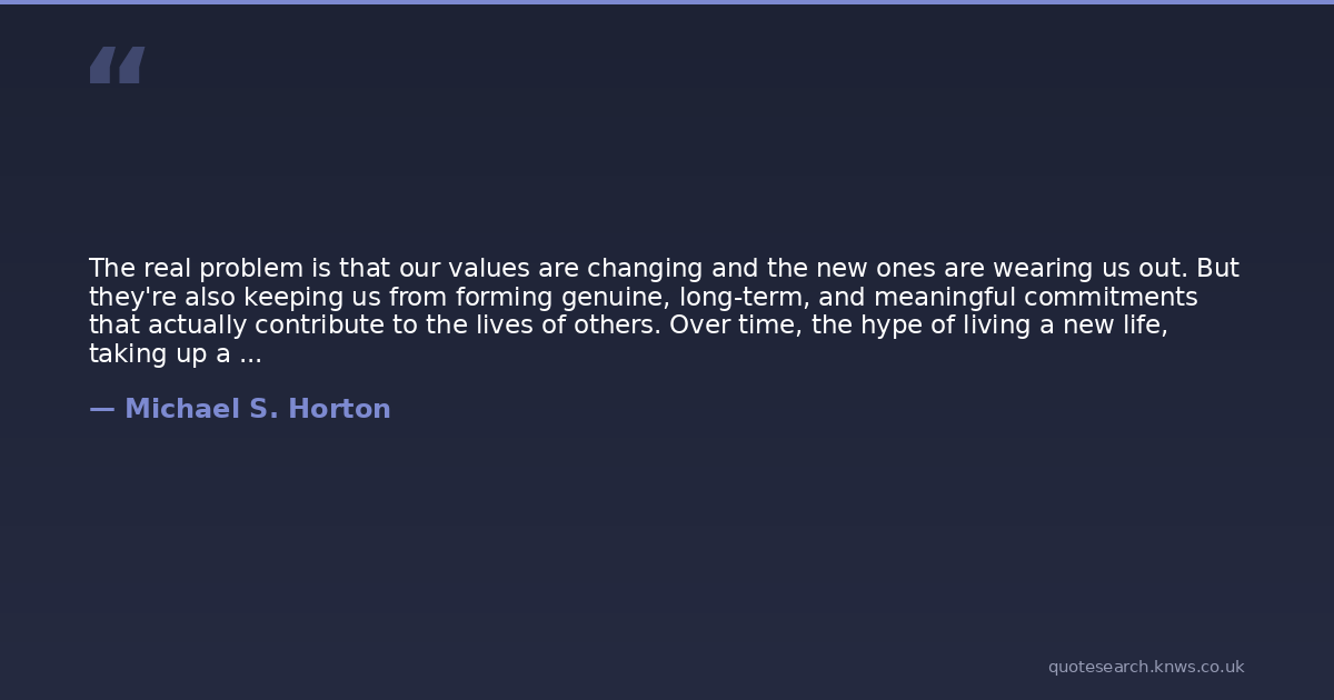The real problem is that our values are changing and the new ones are wearing us out. But they're also keeping us from forming genuine, long-term, and meaningful commitments that actually contribute to the lives of others. Over time, the hype of living a new life, taking up a radical calling, and changing the world can creep into every area of our life. And it can make us tired, depressed, and mean. Michael Horton, Ordinary, 13-14