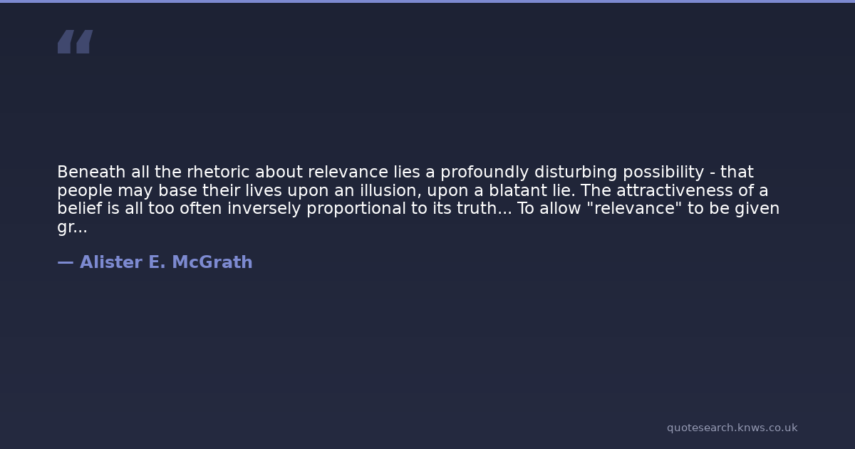 Beneath all the rhetoric about relevance lies a profoundly disturbing possibility - that people may base their lives upon an illusion, upon a blatant lie. The attractiveness of a belief is all too often inversely proportional to its truth... To allow "relevance" to be given greater weight than truth is a mark of intellectual shallowness and moral irresponsibility.