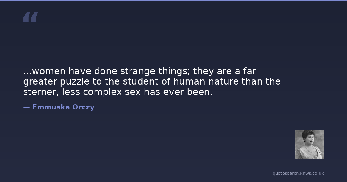 ...women have done strange things; they are a far greater puzzle to the student of human nature than the sterner, less complex sex has ever been.
