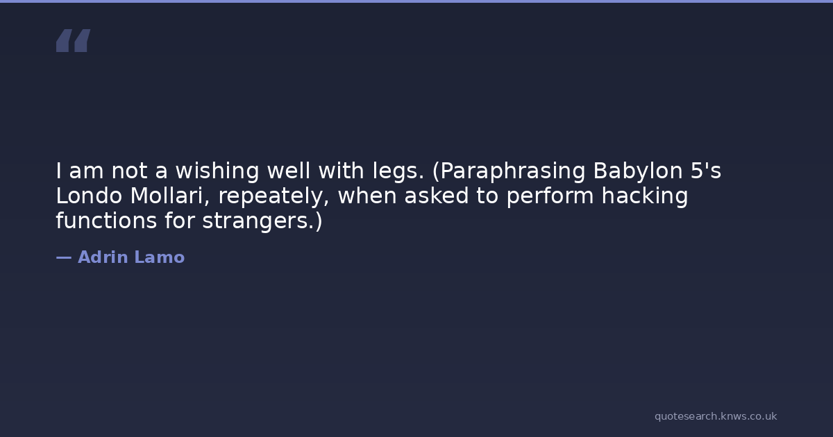 I am not a wishing well with legs. (Paraphrasing Babylon 5's Londo Mollari, repeately, when asked to perform hacking functions for strangers.)