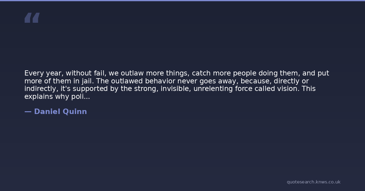 Every year, without fail, we outlaw more things, catch more people doing them, and put more of them in jail. The outlawed behavior never goes away, because, directly or indirectly, it's supported by the strong, invisible, unrelenting force called vision. This explains why police officers are much more likely to take up crime than criminals are to take up law enforcement. It's called 'going with the flow.