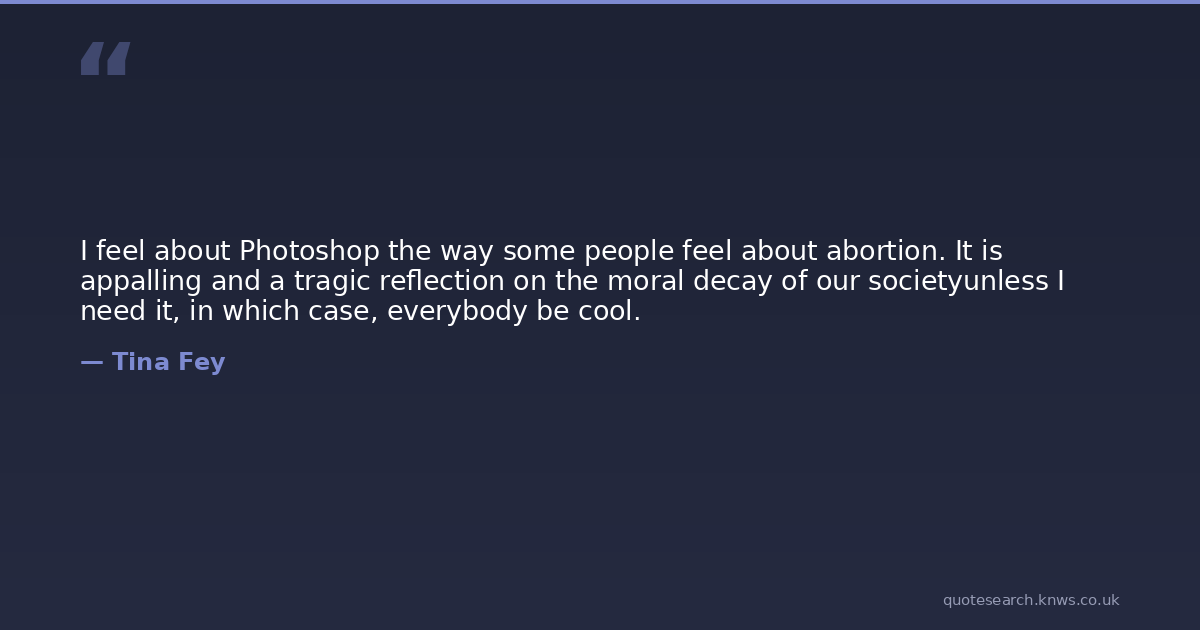 I feel about Photoshop the way some people feel about abortion. It is appalling and a tragic reflection on the moral decay of our societyunless I need it, in which case, everybody be cool.