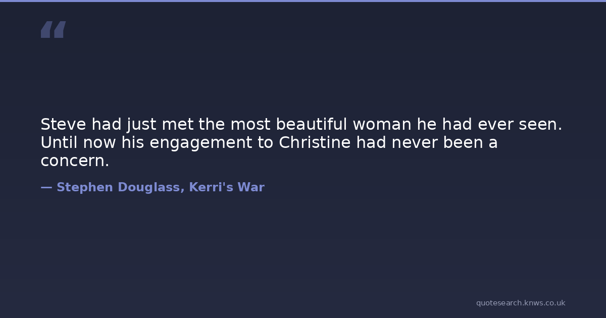 Steve had just met the most beautiful woman he had ever seen. Until now his engagement to Christine had never been a concern.