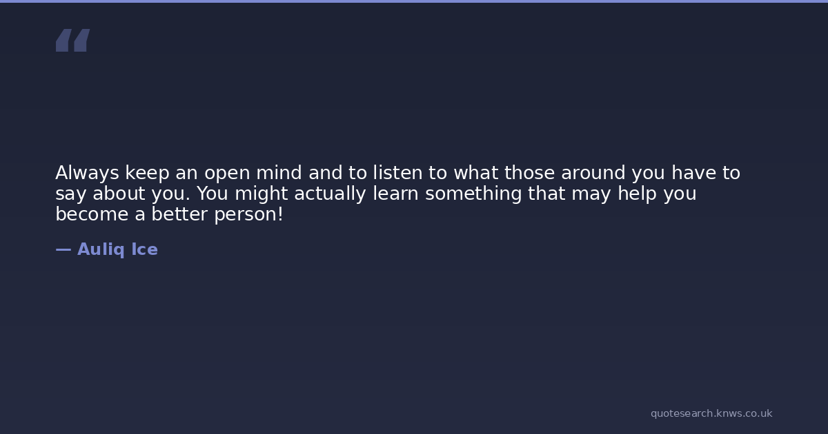 Always keep an open mind and to listen to what those around you have to say about you. You might actually learn something that may help you become a better person!