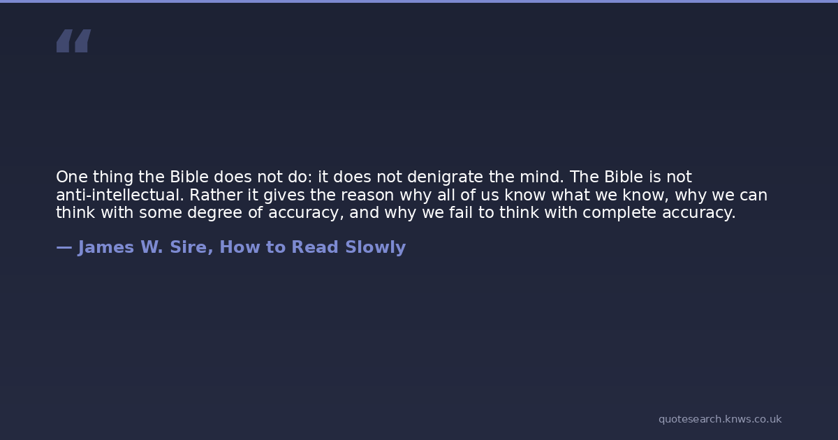 One thing the Bible does not do: it does not denigrate the mind. The Bible is not anti-intellectual. Rather it gives the reason why all of us know what we know, why we can think with some degree of accuracy, and why we fail to think with complete accuracy.
