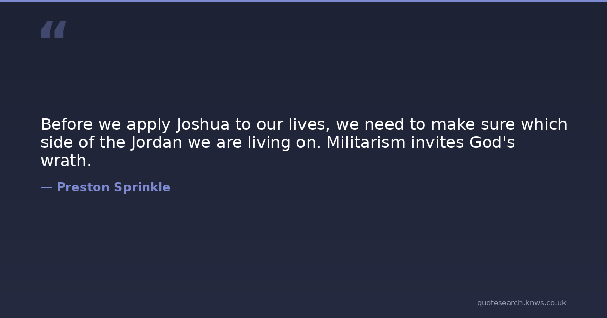 Before we apply Joshua to our lives, we need to make sure which side of the Jordan we are living on. Militarism invites God's wrath.