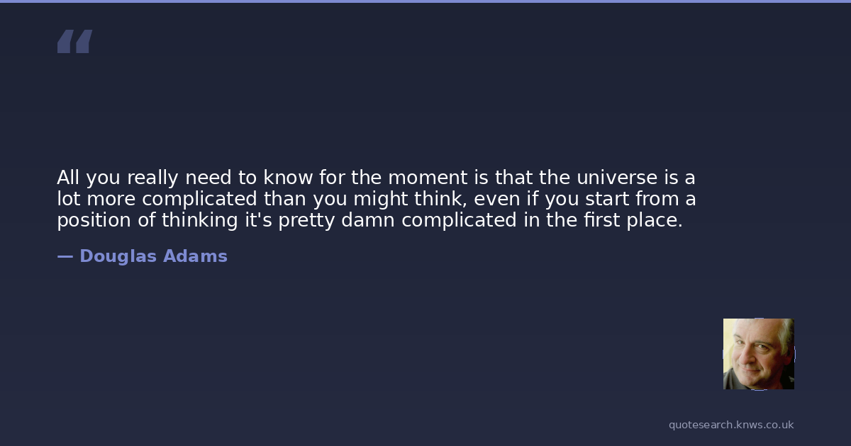 Douglas Adams was a 20th-century English writer and humorist. Douglas Noël Adams was an English author, humorist, and screenwriter, best known as the creator of The Hitchhiker's Guide to the Galaxy. Originally a 1978 BBC radio comedy, The Hitchhiker's Guide to the Galaxy evolved into a "trilogy" of six books which sold more than 14 million copies in his lifetime. Read more on Wikipedia →
