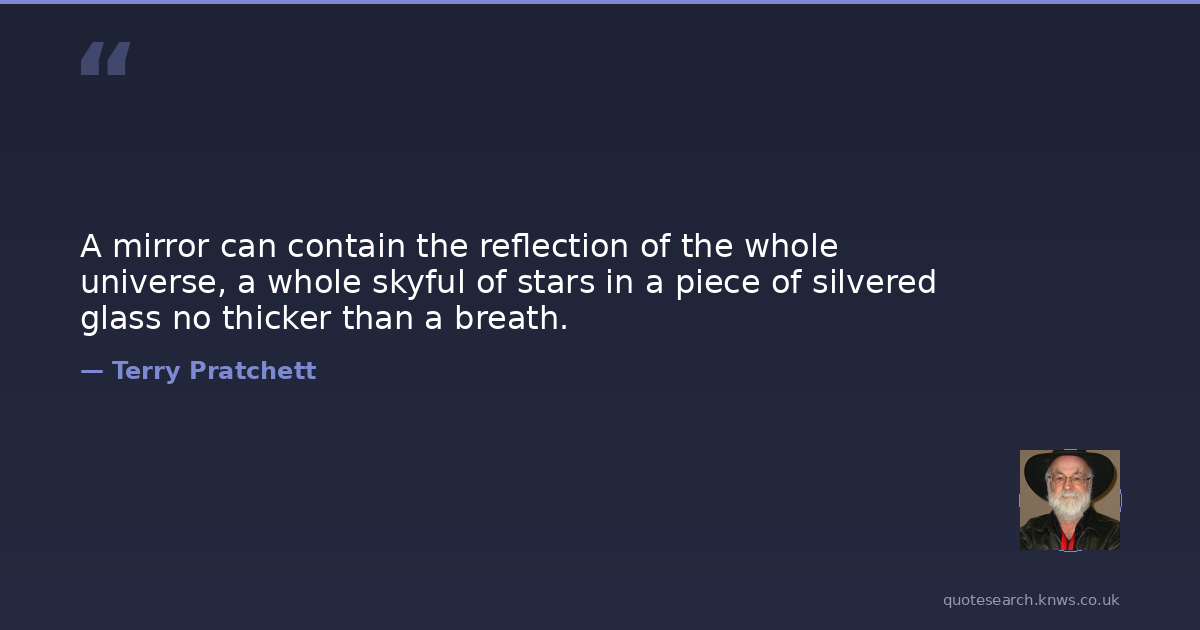 A mirror can contain the reflection of the whole universe, a whole skyful of stars in a piece of silvered glass no thicker than a breath.