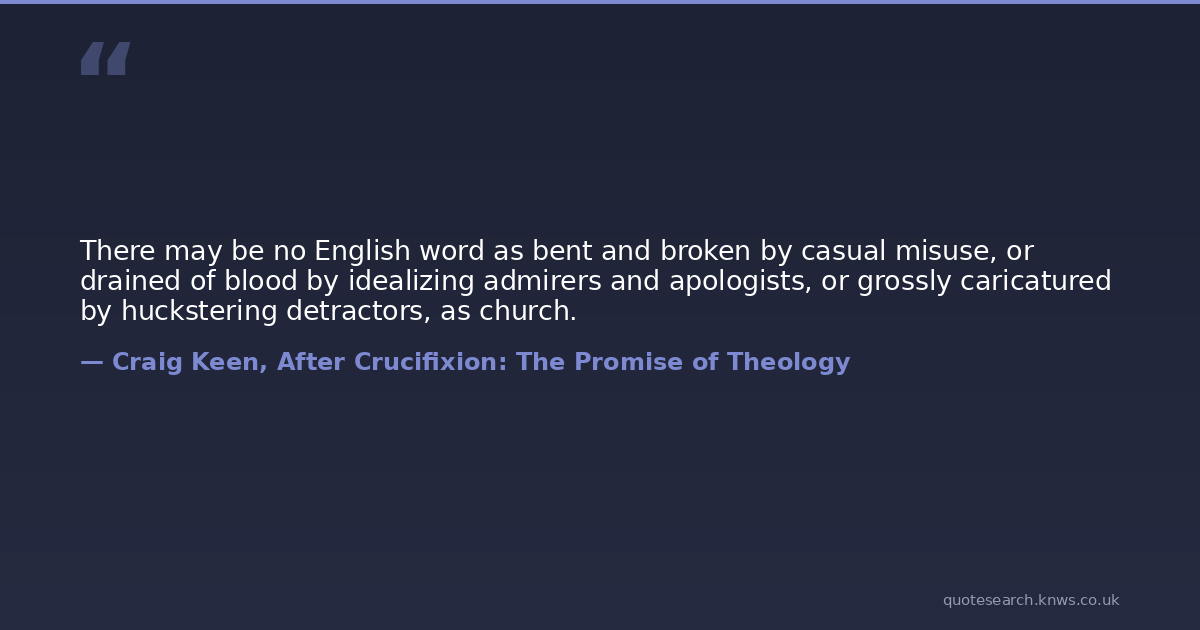 There may be no English word as bent and broken by casual misuse, or drained of blood by idealizing admirers and apologists, or grossly caricatured by huckstering detractors, as church.