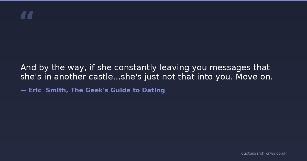 And by the way, if she constantly leaving you messages that she's in another castle...she's just not that into you. Move on. advice Download Image Share on X Share on Facebook Copy Link