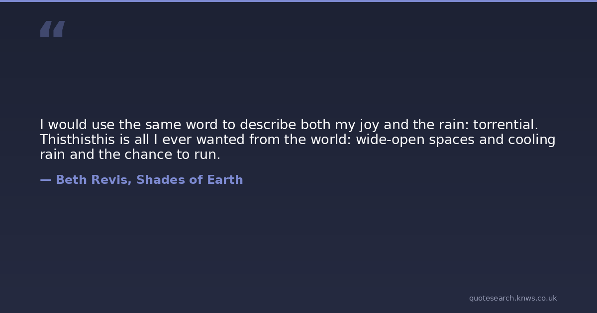 I would use the same word to describe both my joy and the rain: torrential. Thisthisthis is all I ever wanted from the world: wide-open spaces and cooling rain and the chance to run.