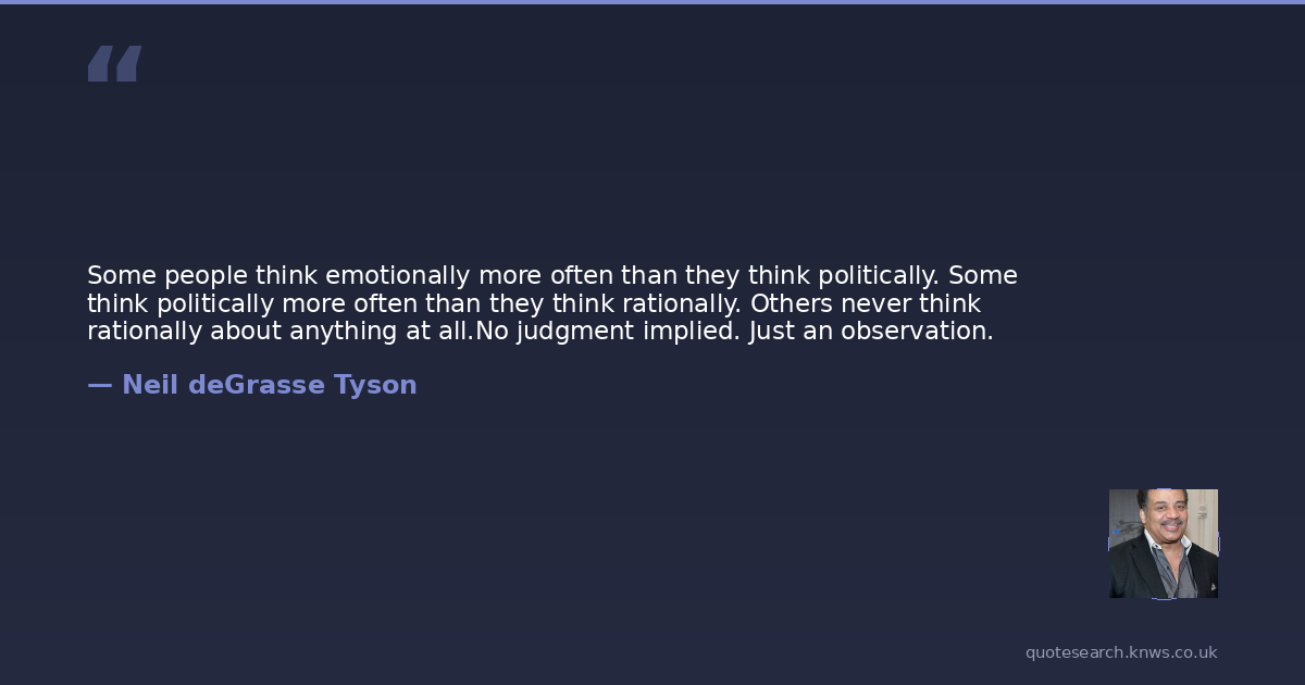 Some people think emotionally more often than they think politically. Some think politically more often than they think rationally. Others never think rationally about anything at all.No judgment implied. Just an observation.