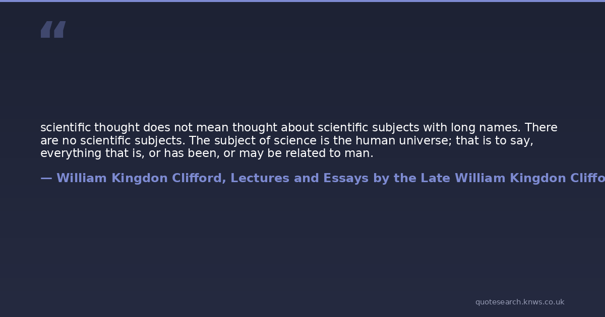 scientific thought does not mean thought about scientific subjects with long names. There are no scientific subjects. The subject of science is the human universe; that is to say, everything that is, or has been, or may be related to man.