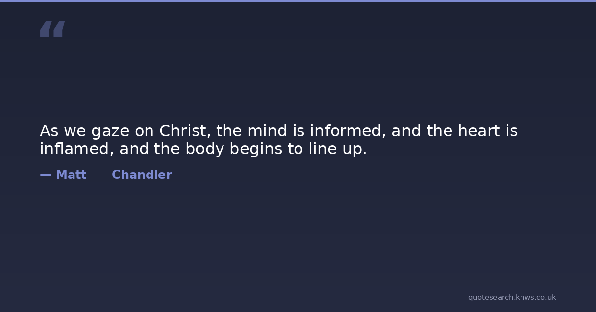 As we gaze on Christ, the mind is informed, and the heart is inflamed, and the body begins to line up.