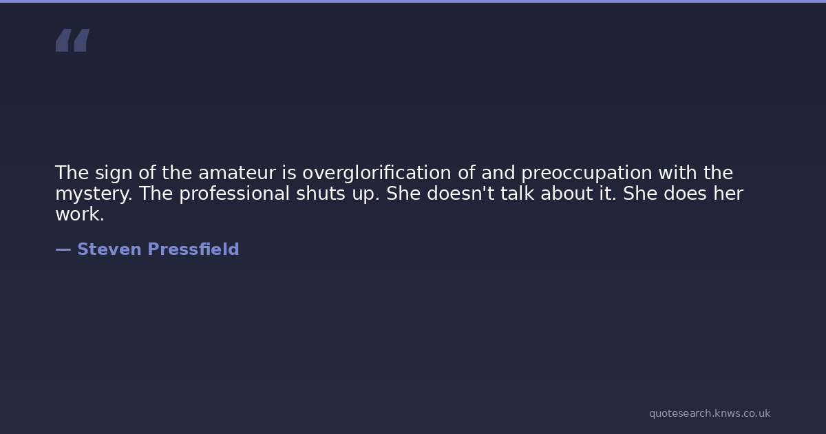 The sign of the amateur is overglorification of and preoccupation with the mystery. The professional shuts up. She doesn't talk about it. She does her work.