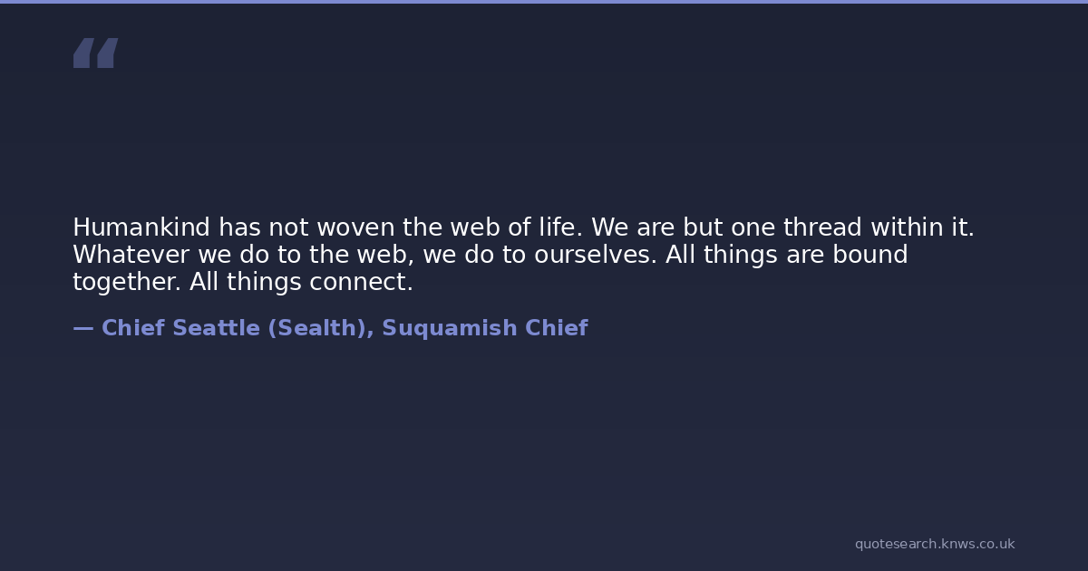 Humankind has not woven the web of life. We are but one thread within it. Whatever we do to the web, we do to ourselves. All things are bound together. All things connect.