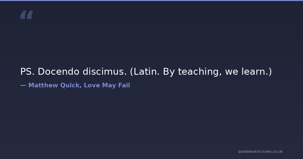 PS. Docendo discimus. (Latin. By teaching, we learn.) inspirational-quote Download Image Share on X Share on Facebook Copy Link