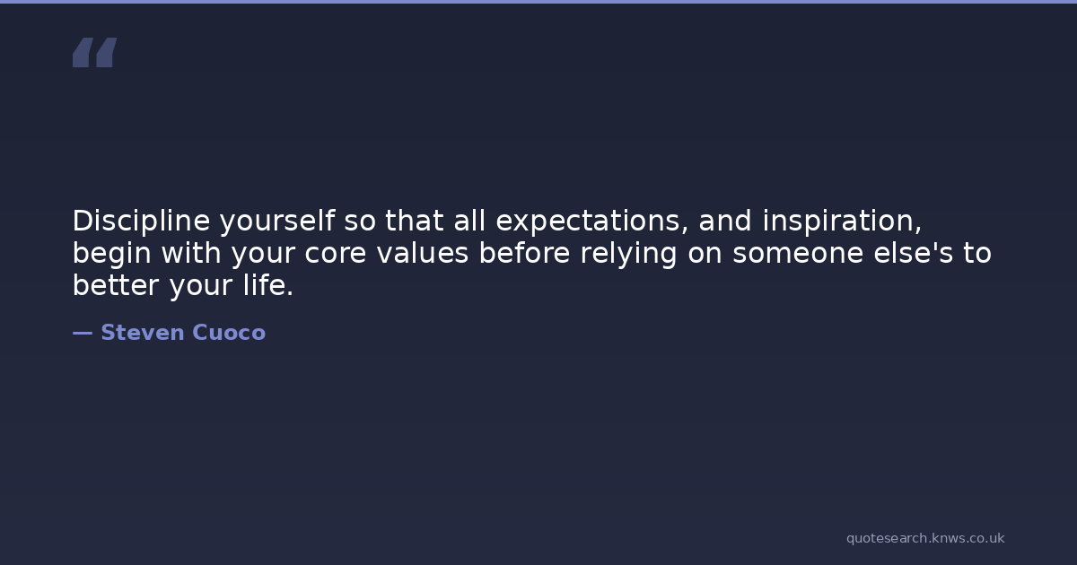 Discipline yourself so that all expectations, and inspiration, begin with your core values before relying on someone else's to better your life.