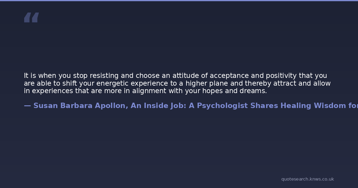 It is when you stop resisting and choose an attitude of acceptance and positivity that you are able to shift your energetic experience to a higher plane and thereby attract and allow in experiences that are more in alignment with your hopes and dreams.