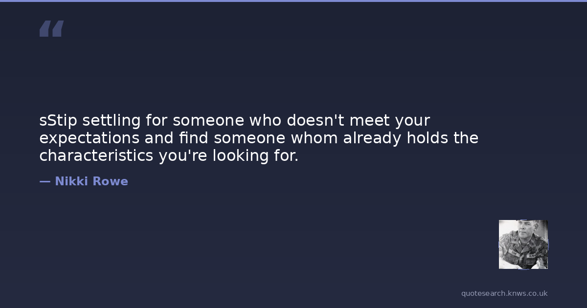 sStip settling for someone who doesn't meet your expectations and find someone whom already holds the characteristics you're looking for.