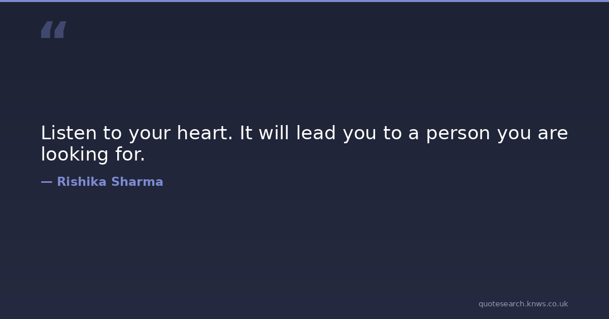 Listen to your heart. It will lead you to a person you are looking for. self-love Download Image Share on X Share on Facebook Copy Link