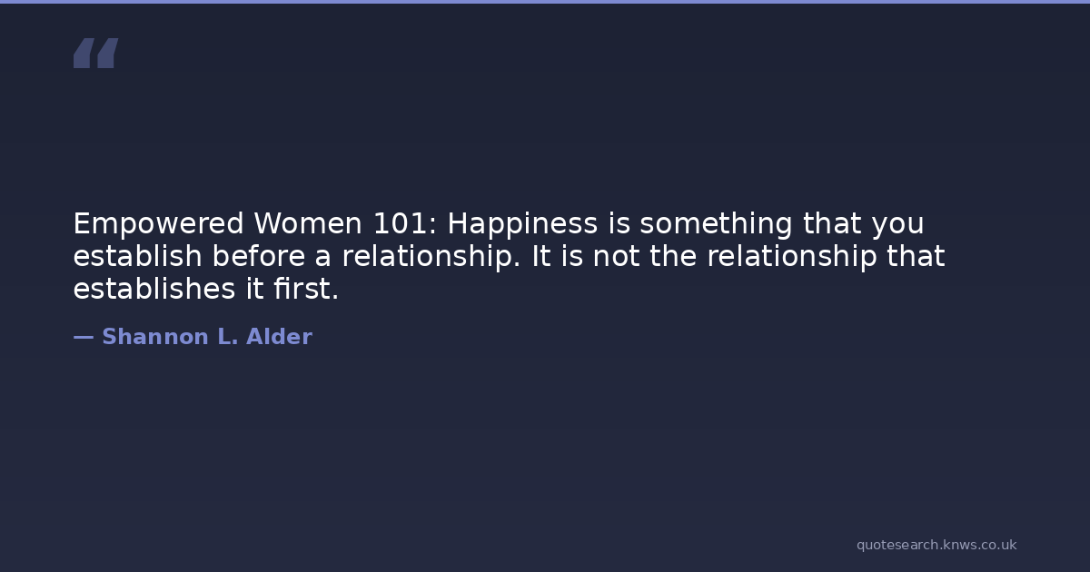 Empowered Women 101: Happiness is something that you establish before a relationship. It is not the relationship that establishes it first.