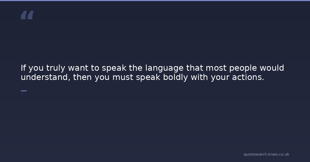 If you truly want to speak the language that most people would understand, then you must speak boldly with your actions.