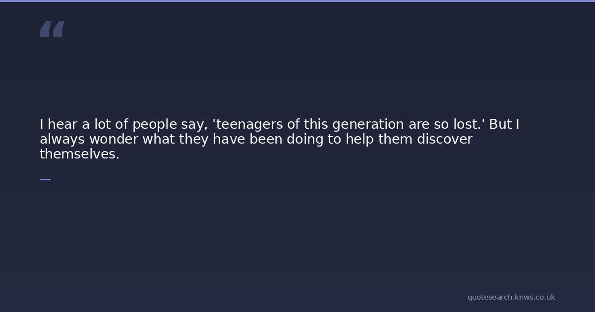 I hear a lot of people say, 'teenagers of this generation are so lost.' But I always wonder what they have been doing to help them discover themselves.