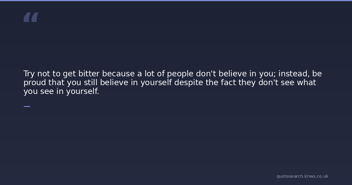 Try not to get bitter because a lot of people don't believe in you; instead, be proud that you still believe in yourself despite the fact they don't see what you see in yourself.