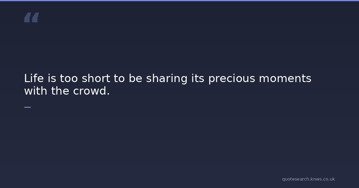 Deprecated: rawurlencode(): Passing null to parameter #1 ($string) of type string is deprecated in /var/www/html/quotesearch/index.php on line 69 "Life is too short to be sharing its precious moments with the crowd." - | Quote SearchSkip to main content