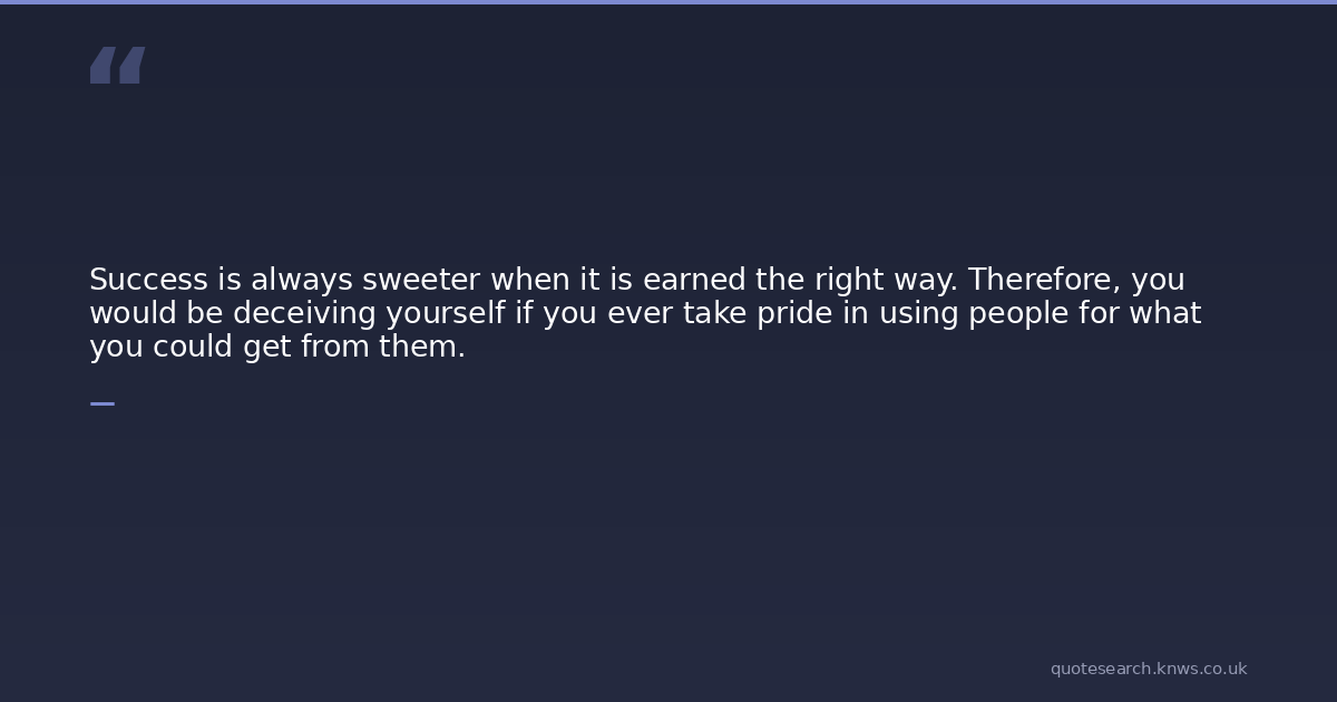 Success is always sweeter when it is earned the right way. Therefore, you would be deceiving yourself if you ever take pride in using people for what you could get from them.