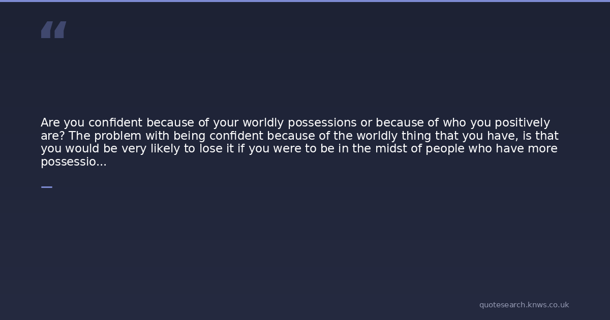 Are you confident because of your worldly possessions or because of who you positively are? The problem with being confident because of the worldly thing that you have, is that you would be very likely to lose it if you were to be in the midst of people who have more possessions than you.