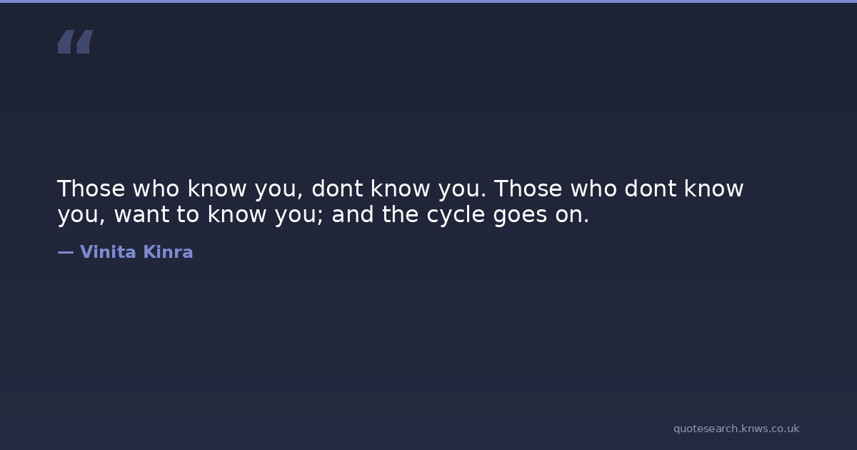 Those who know you, dont know you. Those who dont know you, want to know you; and the cycle goes on.