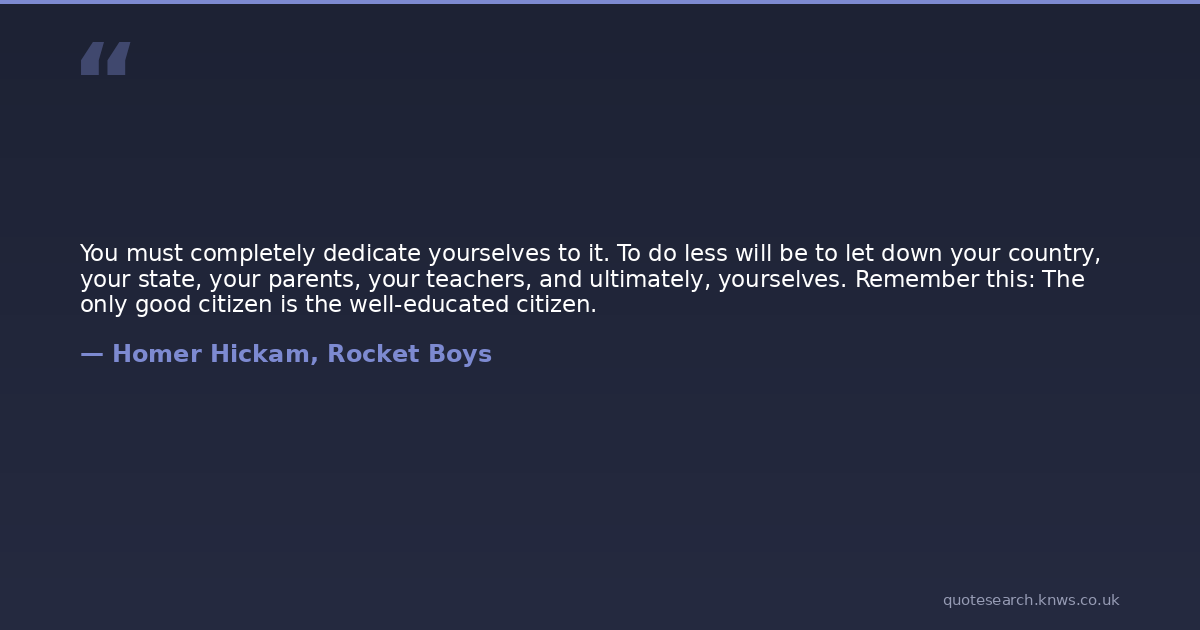 You must completely dedicate yourselves to it. To do less will be to let down your country, your state, your parents, your teachers, and ultimately, yourselves. Remember this: The only good citizen is the well-educated citizen.