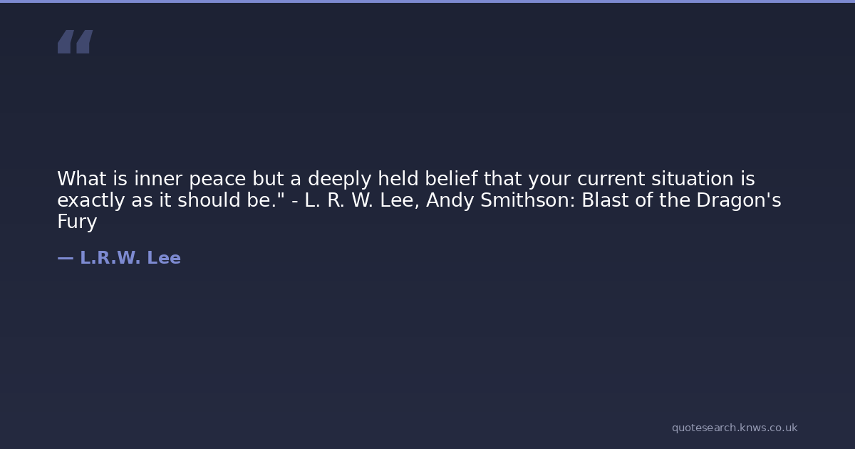 What is inner peace but a deeply held belief that your current situation is exactly as it should be." - L. R. W. Lee, Andy Smithson: Blast of the Dragon's Fury