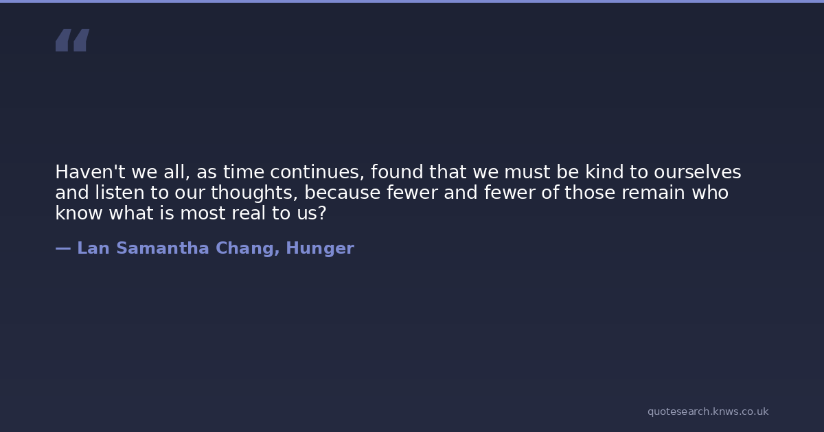 Haven't we all, as time continues, found that we must be kind to ourselves and listen to our thoughts, because fewer and fewer of those remain who know what is most real to us?