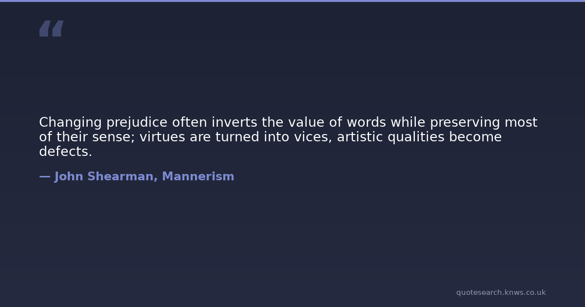 Changing prejudice often inverts the value of words while preserving most of their sense; virtues are turned into vices, artistic qualities become defects.