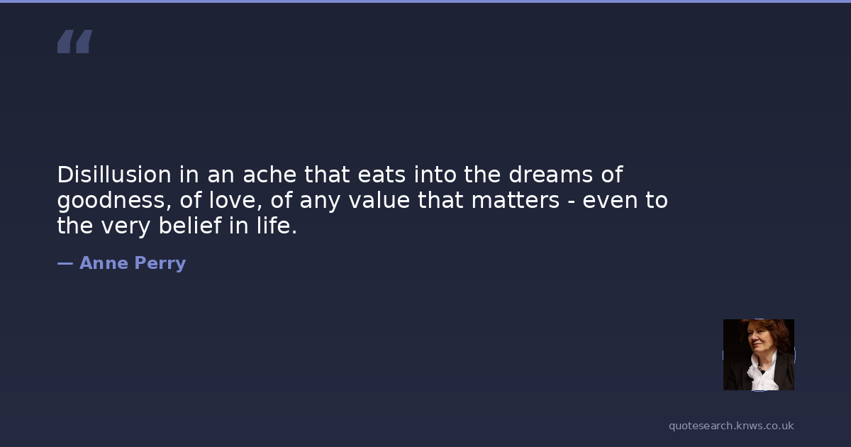 Disillusion in an ache that eats into the dreams of goodness, of love, of any value that matters - even to the very belief in life.