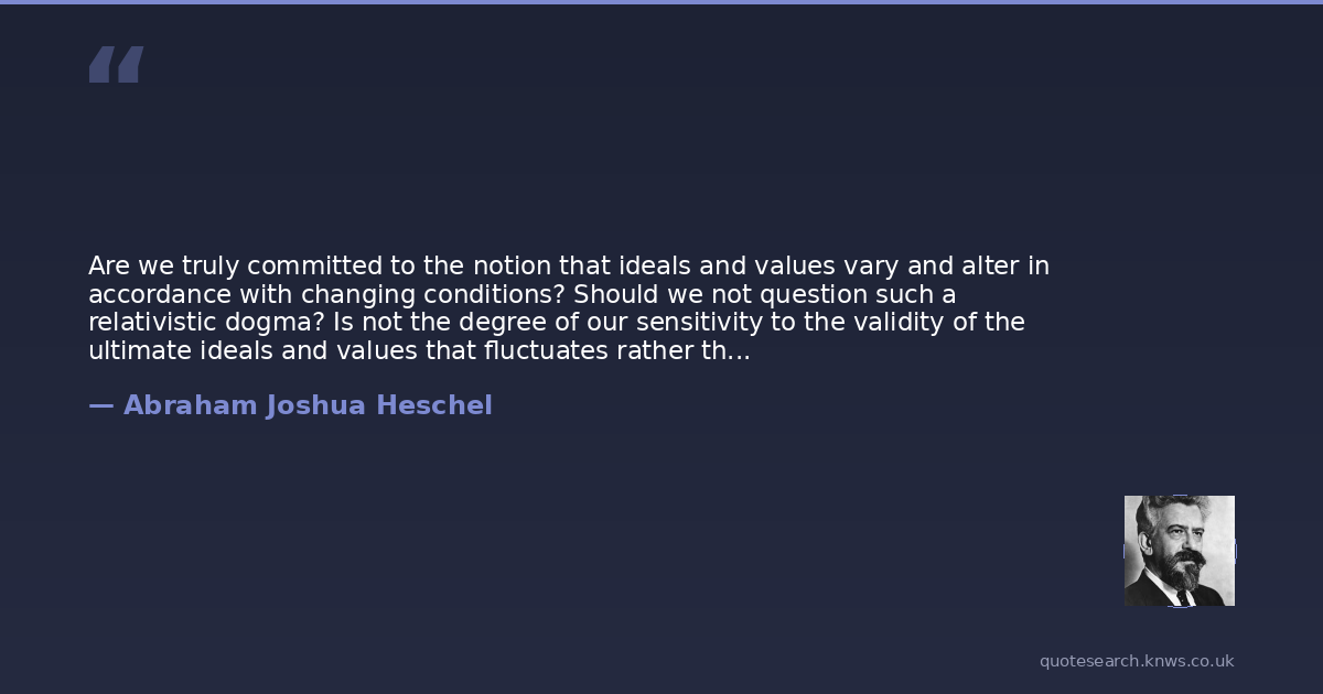 Are we truly committed to the notion that ideals and values vary and alter in accordance with changing conditions? Should we not question such a relativistic dogma? Is not the degree of our sensitivity to the validity of the ultimate ideals and values that fluctuates rather than the ultimate ideals and values?
