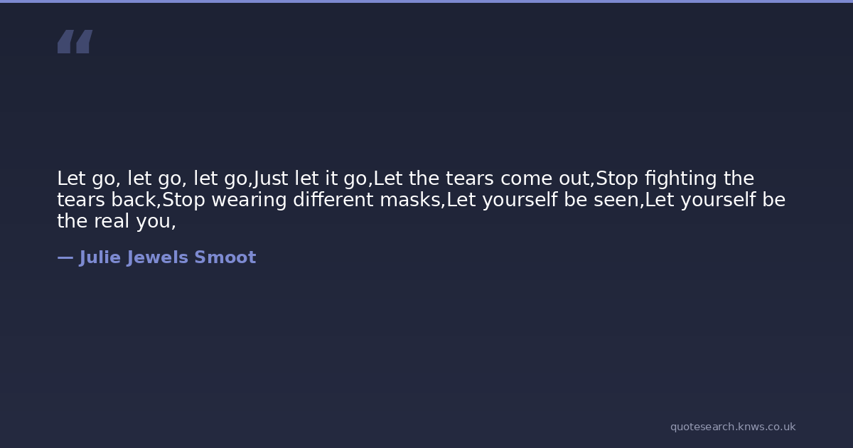 Let go, let go, let go,Just let it go,Let the tears come out,Stop fighting the tears back,Stop wearing different masks,Let yourself be seen,Let yourself be the real you,