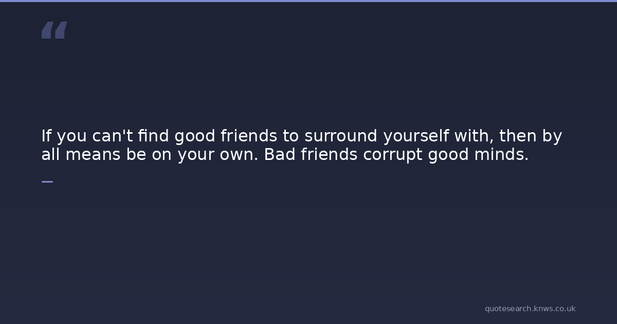 If you can't find good friends to surround yourself with, then by all means be on your own. Bad friends corrupt good minds.