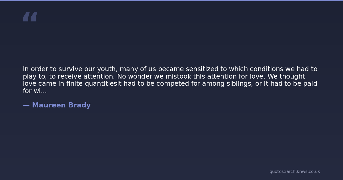 In order to survive our youth, many of us became sensitized to which conditions we had to play to, to receive attention. No wonder we mistook this attention for love. We thought love came in finite quantitiesit had to be competed for among siblings, or it had to be paid for with exacting dues.