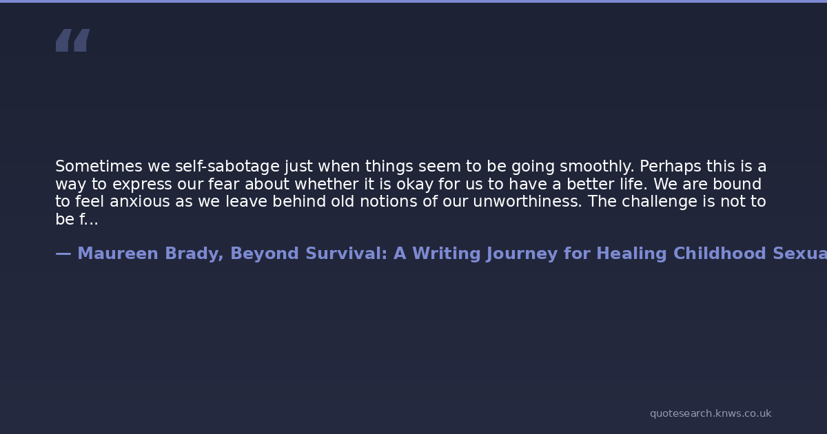 Sometimes we self-sabotage just when things seem to be going smoothly. Perhaps this is a way to express our fear about whether it is okay for us to have a better life. We are bound to feel anxious as we leave behind old notions of our unworthiness. The challenge is not to be fearless, but to develop strategies of acknowledging our fears and finding out how we can allay them.