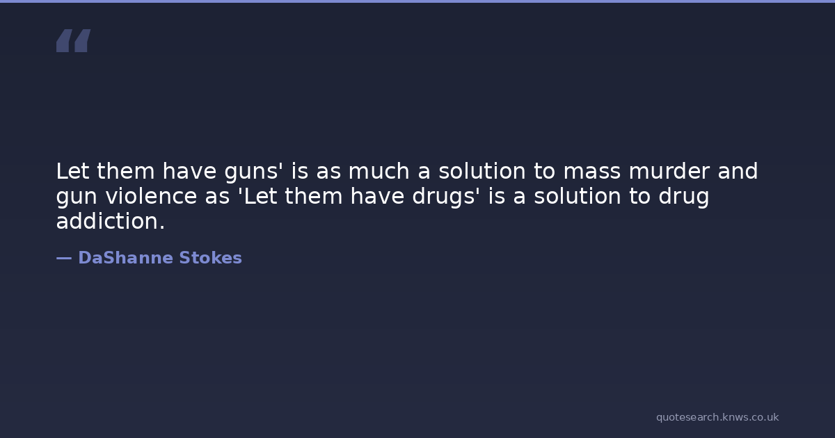 Let them have guns' is as much a solution to mass murder and gun violence as 'Let them have drugs' is a solution to drug addiction.