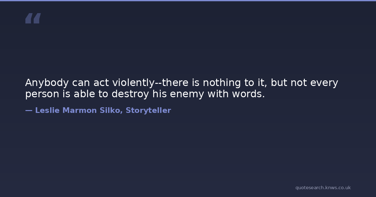 Anybody can act violently--there is nothing to it, but not every person is able to destroy his enemy with words. violence Download Image Share on X Share on Facebook Copy Link