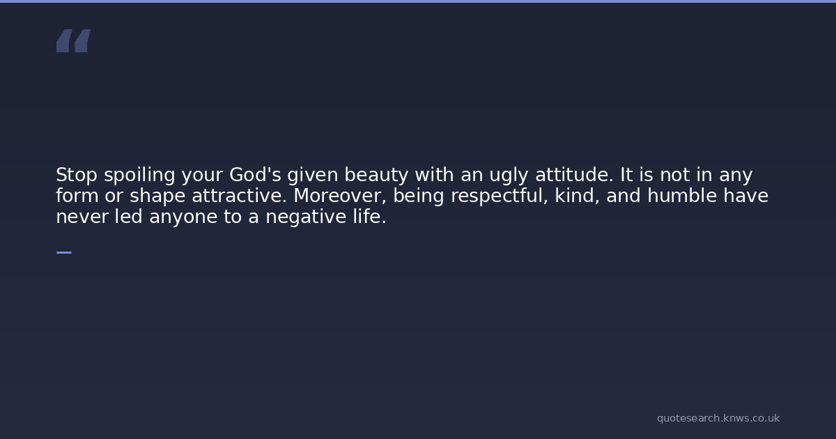 Stop spoiling your God's given beauty with an ugly attitude. It is not in any form or shape attractive. Moreover, being respectful, kind, and humble have never led anyone to a negative life.